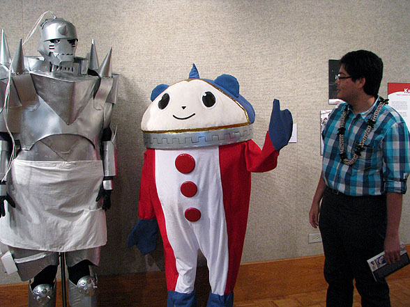 And here’s Brady next to costumes of Fullmetal Alchemist’s Alphone Elric and Persona‘s Teddy in the Kawaii Kon section.