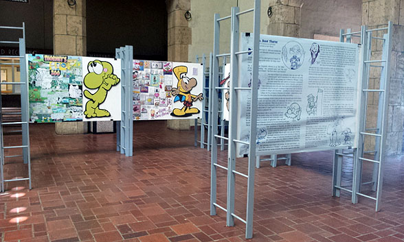 Remember those poster boards and cutouts of Dave’s characters from the Celebration of Life last July (http://ow.ly/uhQ9u)? They’ve been repurposed as displays in this exhibit.
