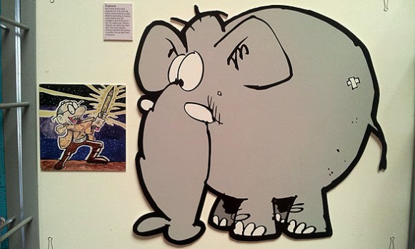 Previous Image Next Image 20140304_133409 And here’s a display featuring the Dave Thorne elephant. Because, well, Dave loved to draw elephants.
