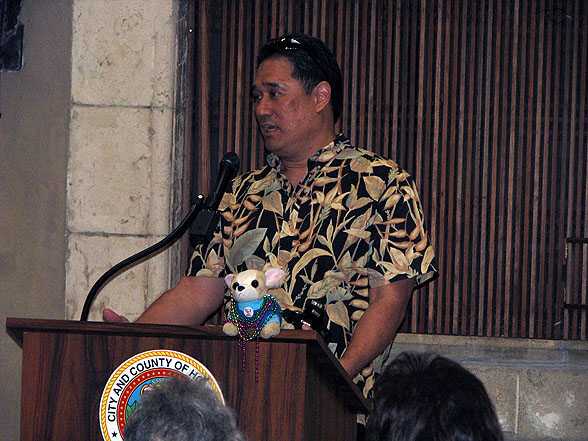 Previous Image Next Image IMG_4602 At the opening reception Tuesday evening, Alan Low offered a few remarks. Pepe the chihuahua translated everything into “doge” speak.