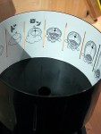 That’s the stairwell in the theater wing of the mall, next to Kuru Kuru Sushi. You’ll note that to the right of the statue, there’s a black table with something on it. Here’s what it looks like close up: