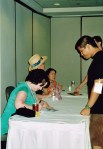 They can turn in the stamp card for some cool Doraemon-themed prizes, as seen on a table at the HIS Hawaii office at the Waikiki Beach Marriott. (For the record, I REALLY wish I could have a box of Doradamia Nuts. I know they’re just regular Hawaiian Host chocolates, but still! That box!)