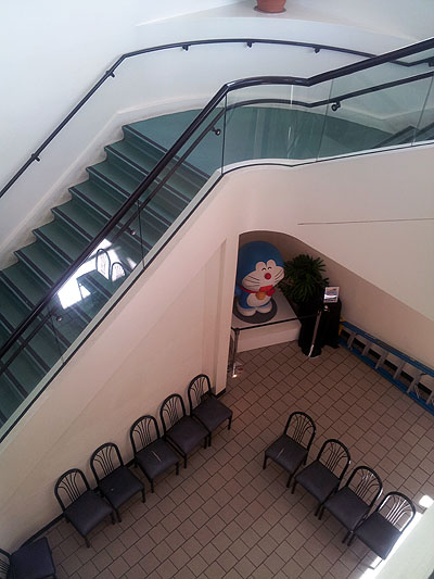 Random life-size Doraemon statue at Ward Warehouse was truly random! And there was nothing around at the time to indicate what it was for, who put it there, or why Doraemon was hanging around with a determined-looking dog under the escalators to and from The Old Spaghetti Factory. Since I was working on the museum exhibit preview with tag-team partner in fandom Wilma J., I asked my contact at the museum whether they had anything to do with it; she replied that they did not.