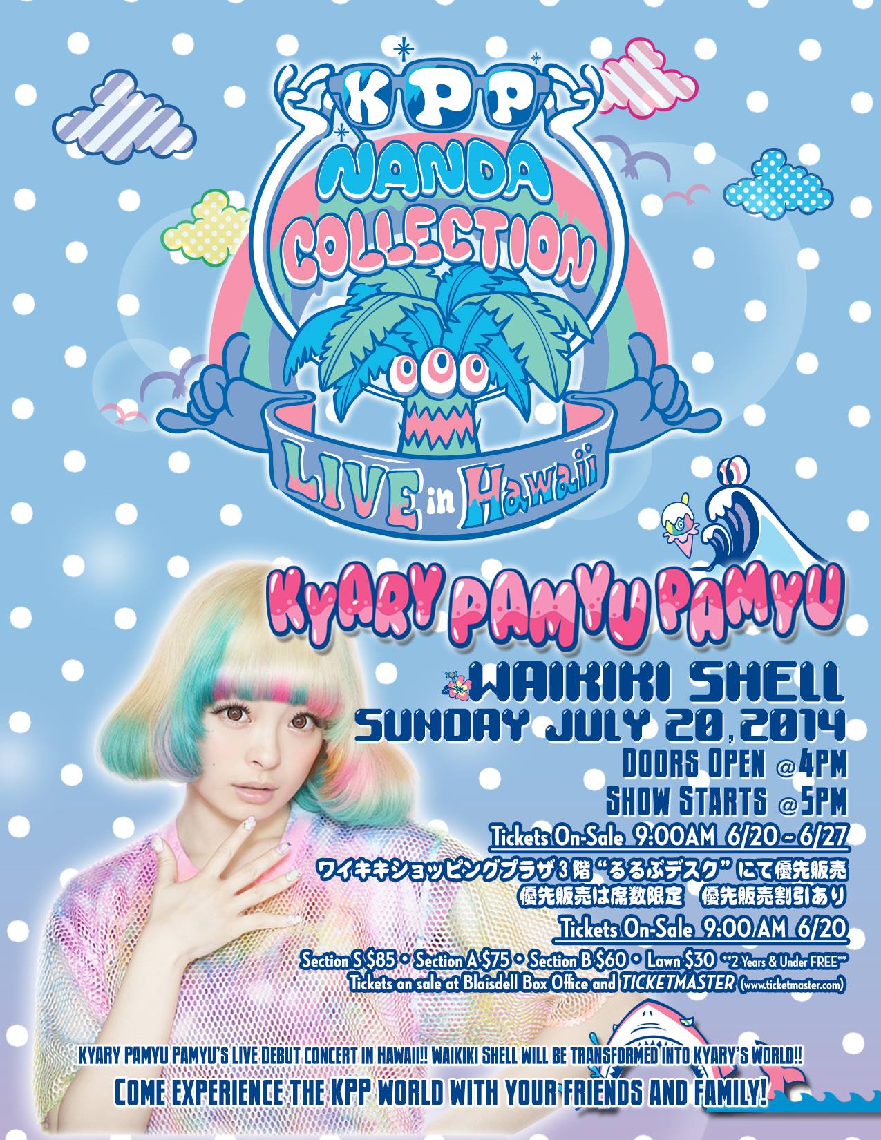 Kyary Pamyu Pamyu — or “KPP,” to her loyal fans and lazy anime/manga bloggers who don’t want to keep typing “Kyary Pamyu Pamyu” every time they refer to her in a post — is coming to Hawaii for the first time to wrap up her “Nanda Collection” world tour, at 5 p.m. July 20 at the Waikiki Shell. Tickets went on sale Friday … and since I only started seriously working on this post around Wednesday, I held off on writing up this item in case demand hit Bruno Mars/Jack Johnson-esque “sneeze and you missed out” levels.