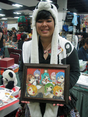 IMG_6232 (1)The exhibit has already garnered a fair amount of press for Saturday’s pop-up event featuring artists connected to Giant Robot magazine, but what’s relevant to our interests here is that several friends of the blog — Brady Evans, Tara Tamayori (that’s her at right), Audra Furuichi, Rose Dela Cruz and Jaymee Masui — all have pieces available for sale in this exhibit. In addition, Tara, Audra, Brady and Jaymee will be joining artist Iolani Slate for a special “Manga Market” event from 1 to 3 p.m. Wednesday, with a mini Artist Alley-esque setup in the entrance lanai — prints, original artwork and other merchandise will be available for sale — live art demonstrations and a make-and-take art table. If you can’t make it on Wednesday, the museum is open from 10 a.m. to 4 p.m. Tuesday through Saturday, 11 a.m. to 4 p.m. Sunday and noon to 4 p.m. June 28.