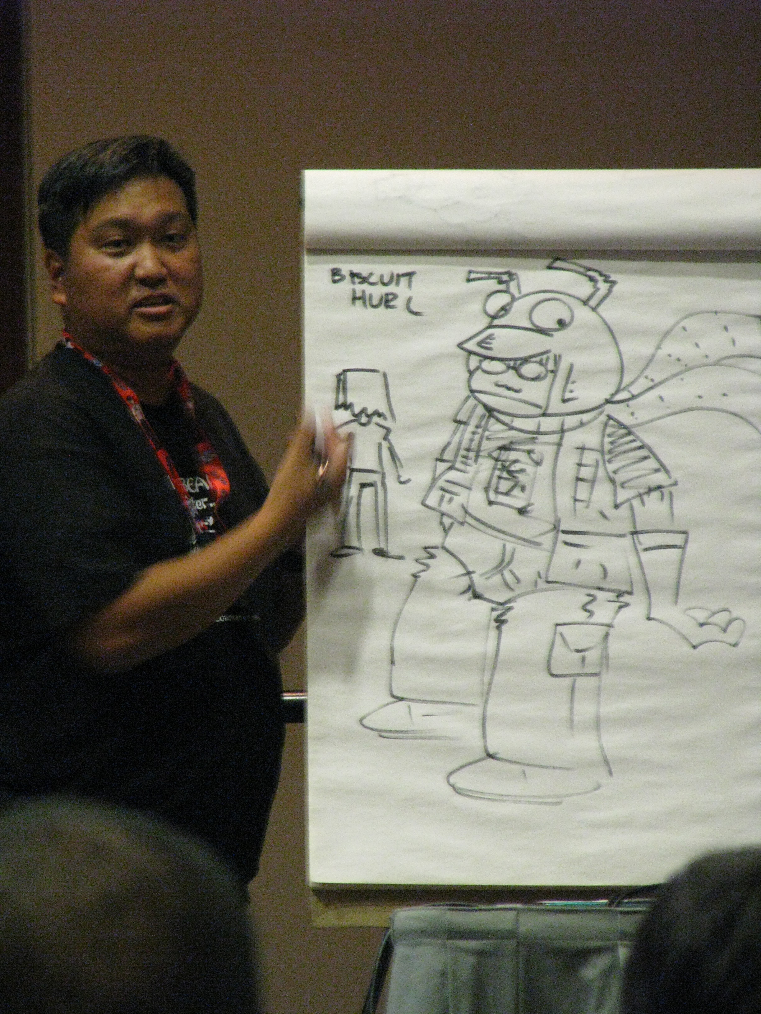 IMG_8214Finally, I’d be remiss if I didn’t mention a talk by cartoonist Jon J. MurakamiGordon Rider/Edamame Ninjas creator, Star-Advertiser “Calabash” artist, you know the drill — and Michael Cannon of Comic Jam Hawaii at Kapolei Library at 2 p.m. Saturday, June 27. Jon and Mike will go over the process of creating a mini-comic — character design basics, layout and story development — and participants will be given their own materials to create their own comic right there, right then. The library is at 1020 Manawai St.; call 693-7050 if you need any assistance.