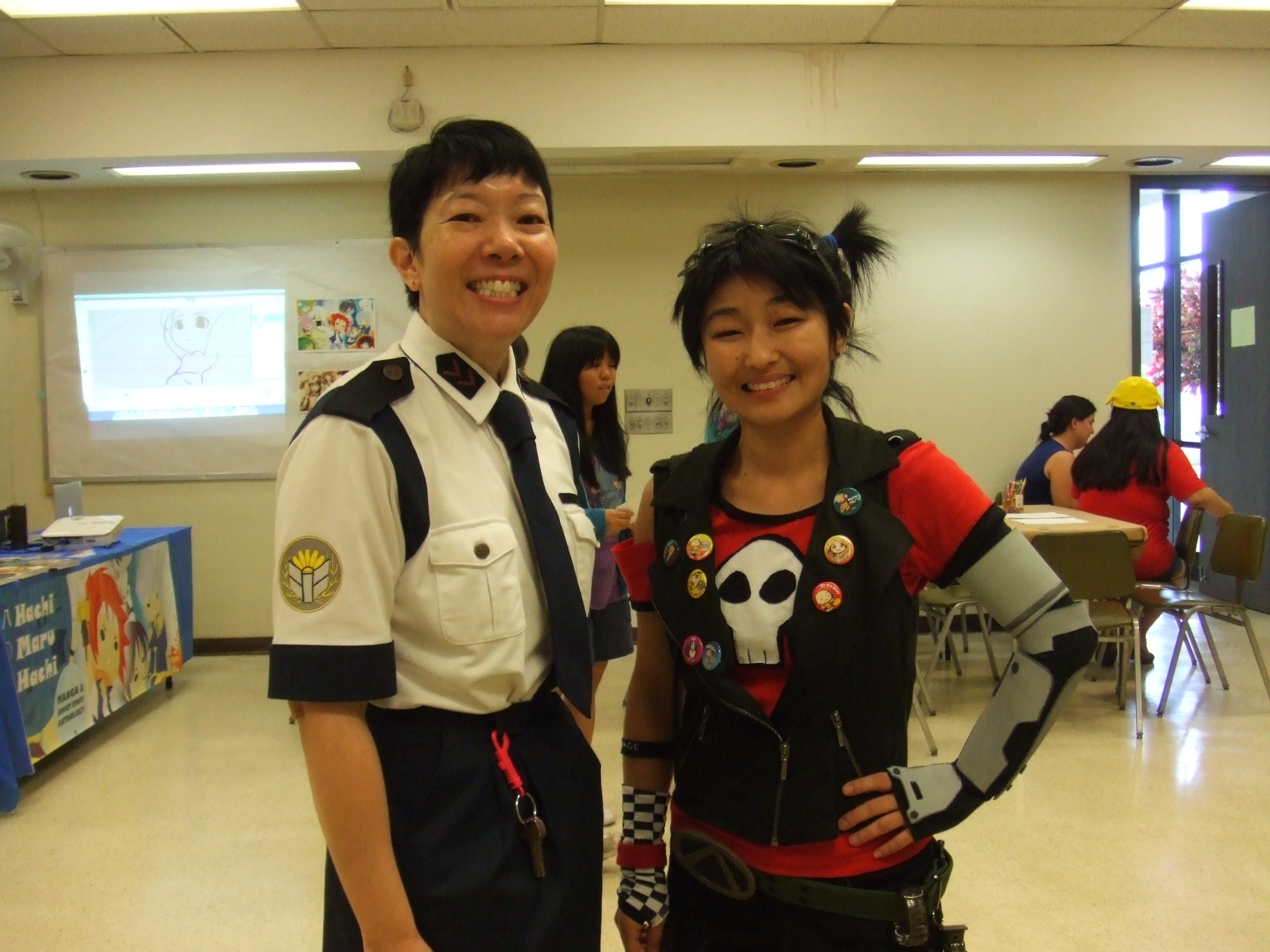 Of particular note is that this will be the last time you’ll be able to pick up some of that sweet nemu*nemu merchandise in person this year; Audra’s said she’s going to be skipping her traditional holiday craft fair circuit in favor of travel, so stock up on those gifts now! (Or you could just go online and order anytime, but hey, I’m old-school. Personal interaction’s always nice.) Cosplay, of course, is also welcomed; heck, here’s Hillary cosplaying with coworker Wendy Araki at last year’s event.