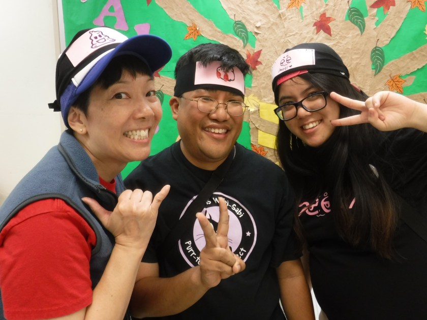Not to mention a certain Kirby-obsessed friendly neighborhood otaku blogger, shown here with McCully-Moiliili Library branch manager/Mini Con chief Hillary Chang and volunteer Alyssa Au.